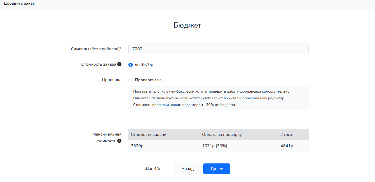 Создавайте шаблоны задач и добавляйте их в работу пакетами. Например, если вам нужны несколько текстов по одинаковому ТЗ, можно разместить их на платформе в один клик. Практично — вы экономите время на постановку задачи.