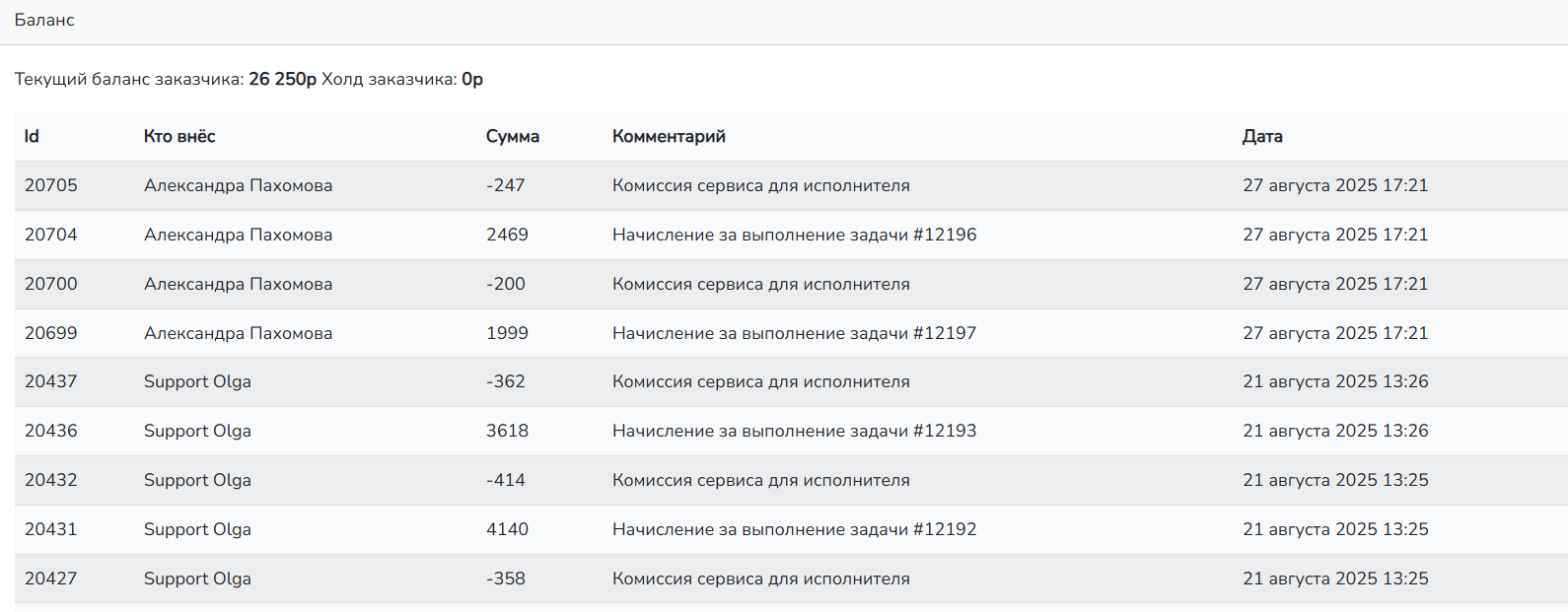 Заранее рассчитывайте бюджет проектов и пополняйте баланс профиля компании. Система автоматически подсчитает стоимость задач по установленным расценкам, без ошибок распределит с депозита суммы оплаты исполнителям. Ничего считать вручную не нужно.